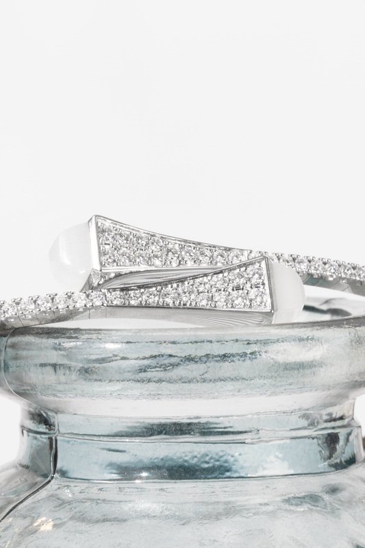 Marli Cleo Bangle in White Gold Diamond/Moon Stone