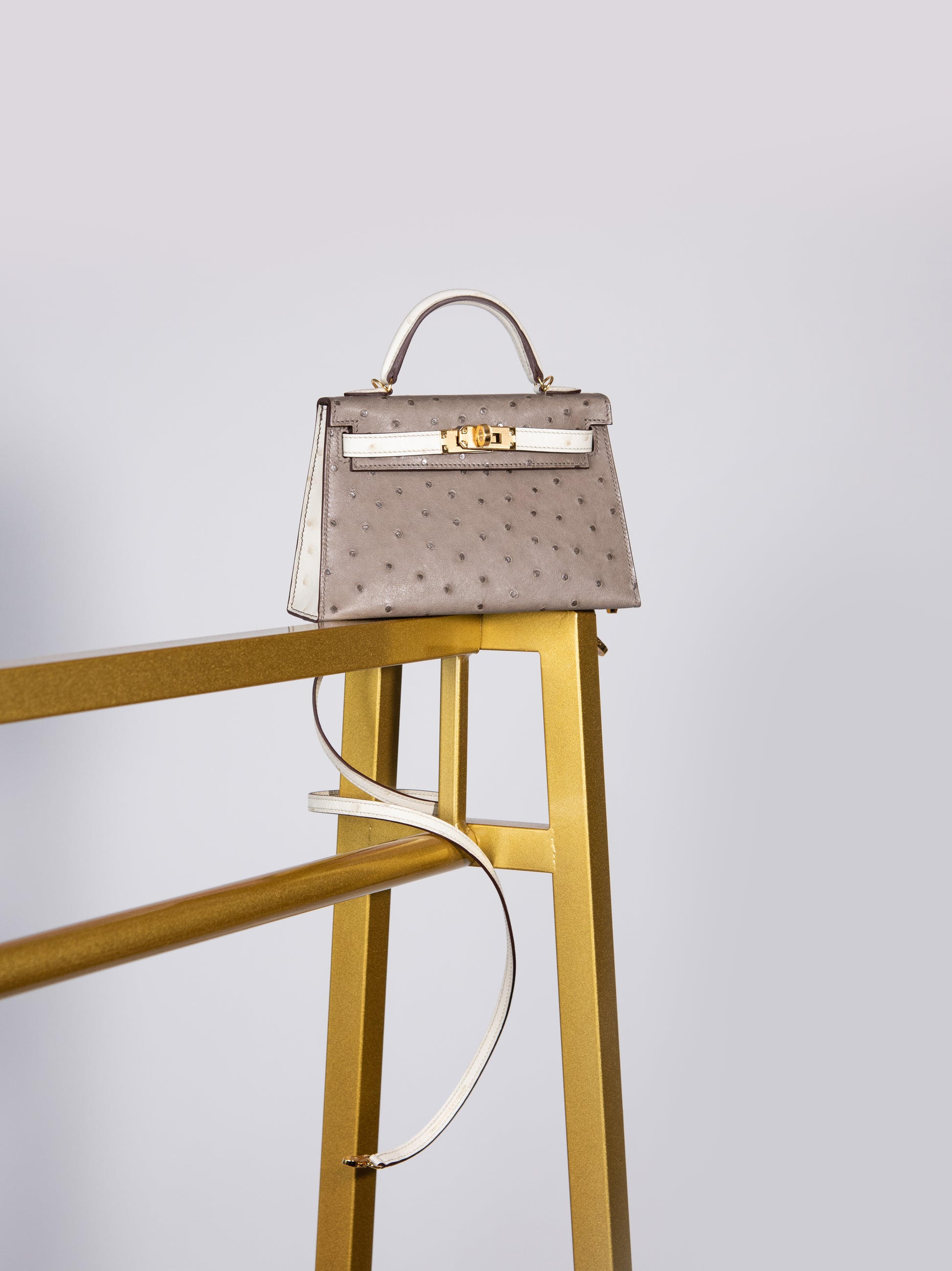 Hermès - HSS Mini Kelly Ostrich in Beton & Gris Asphalt GHW