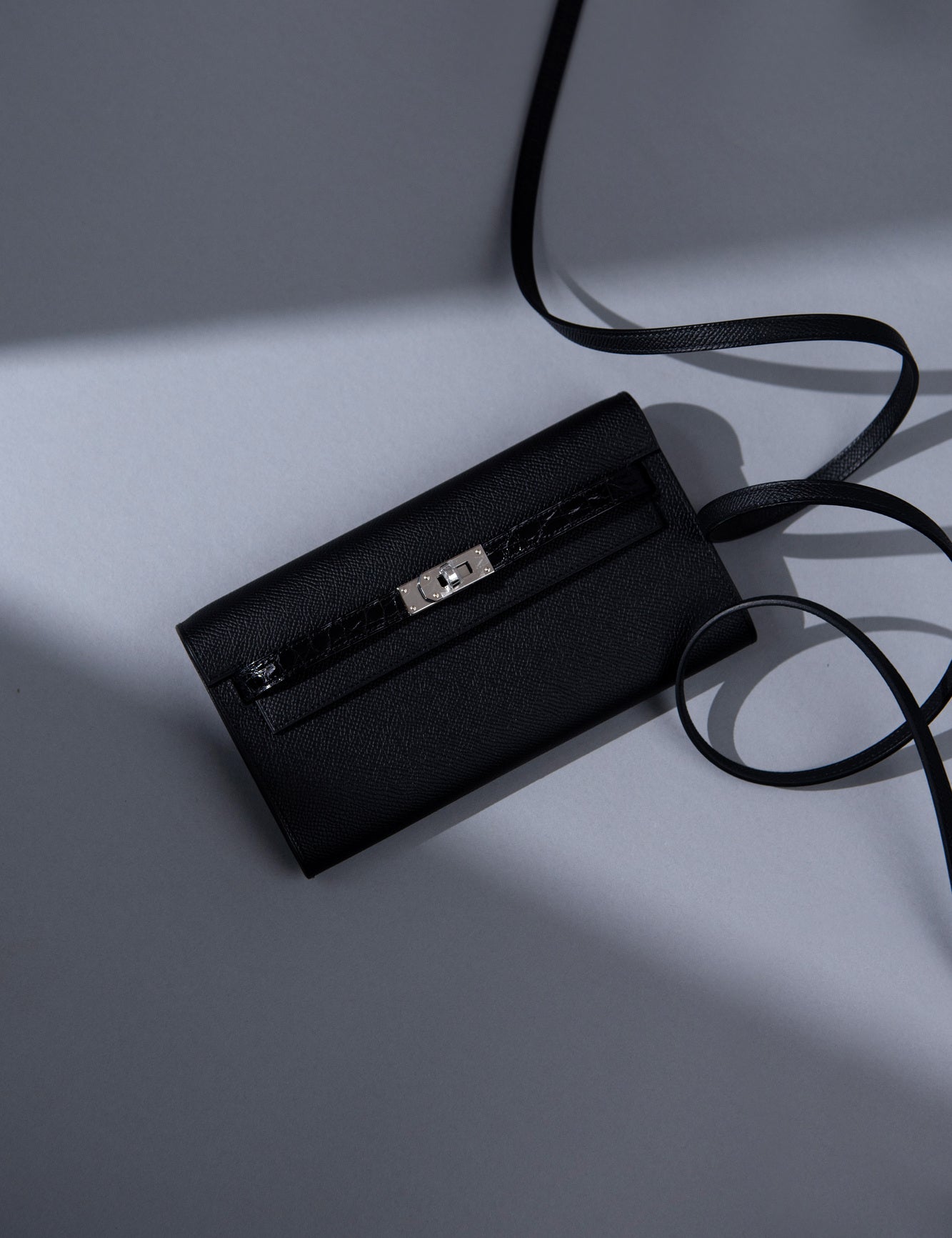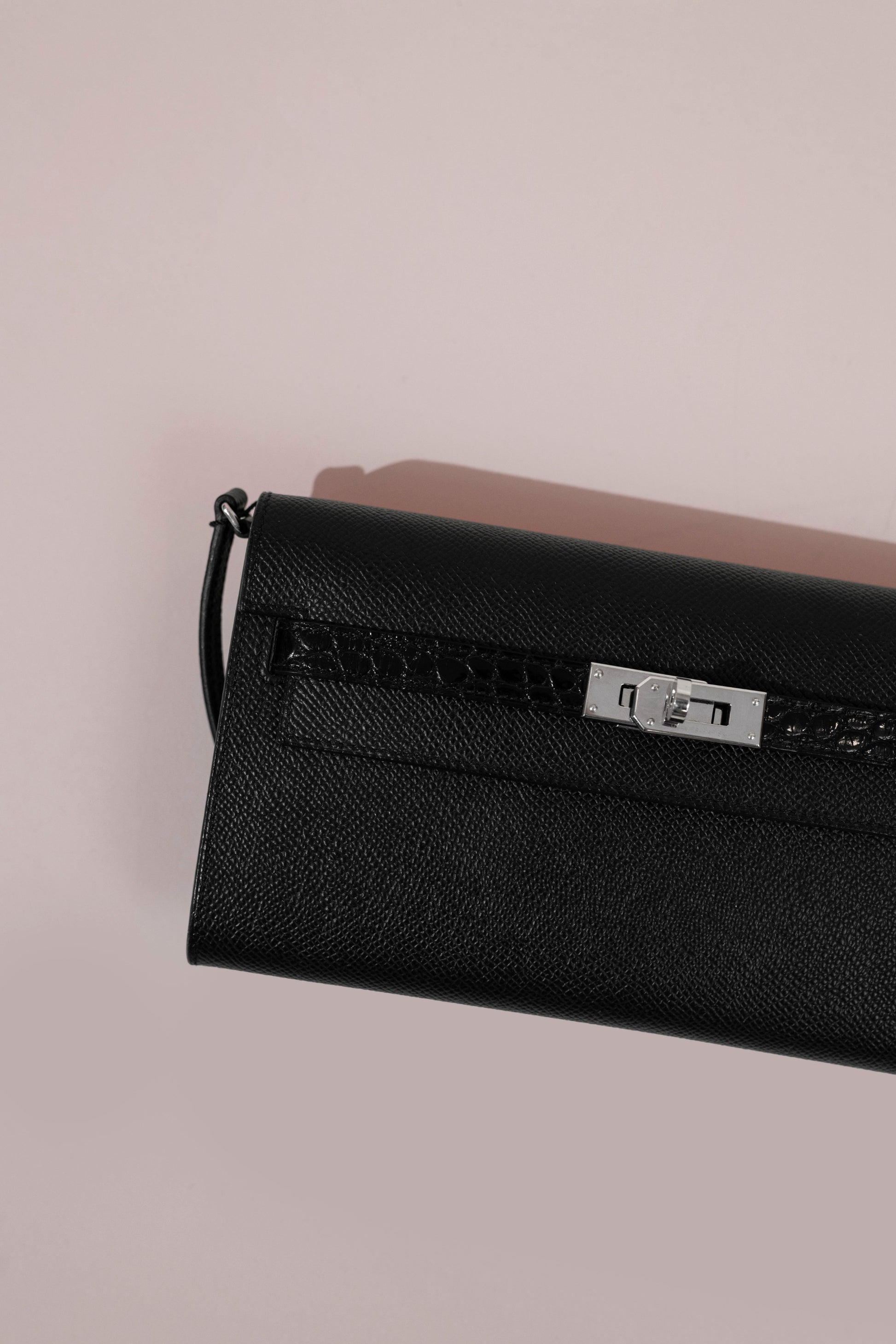 Hermès Kelly Wallet To Go Black Touch Crocodile PHW