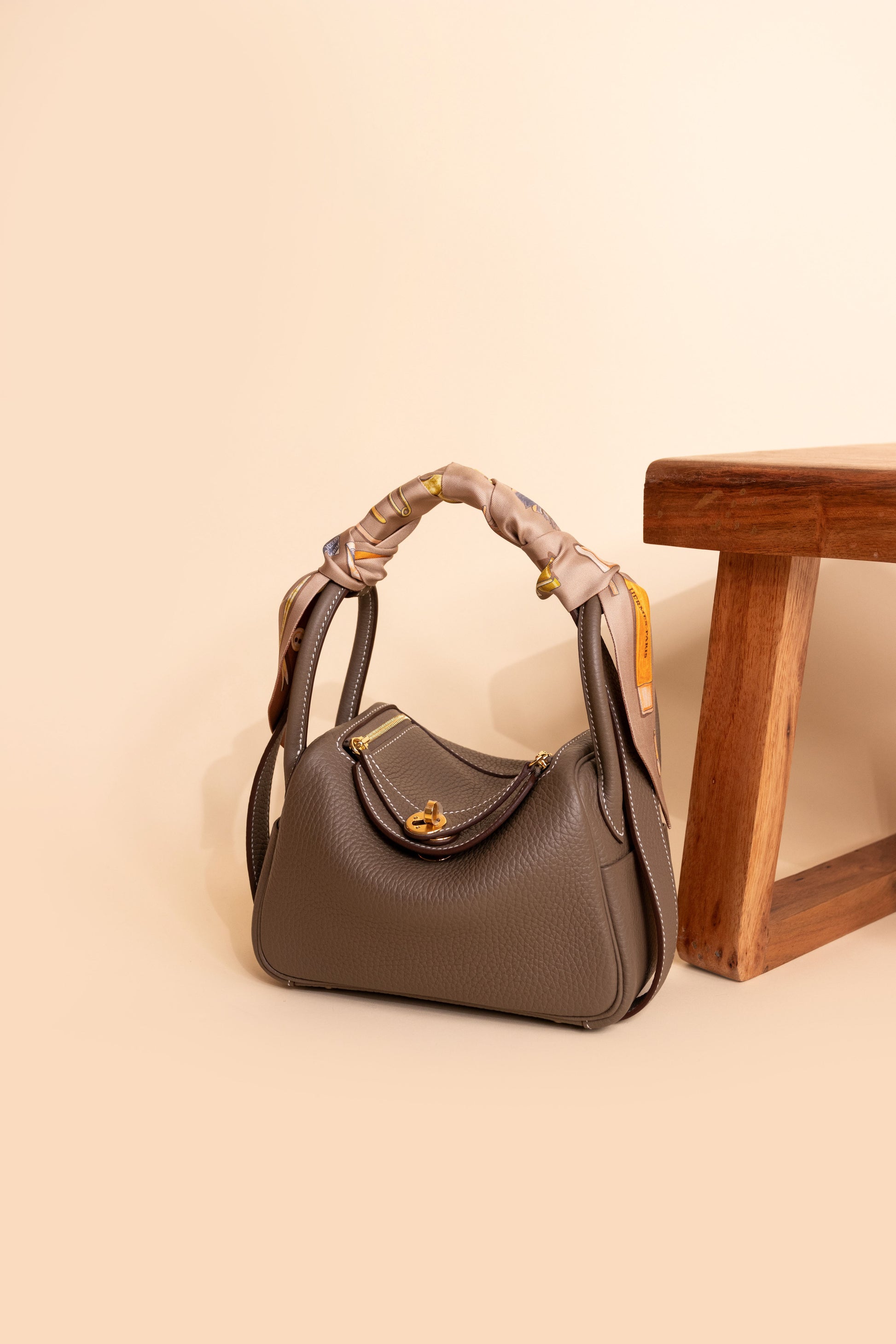 Hermès Mini Lindy Etoupe GHW with Twilly