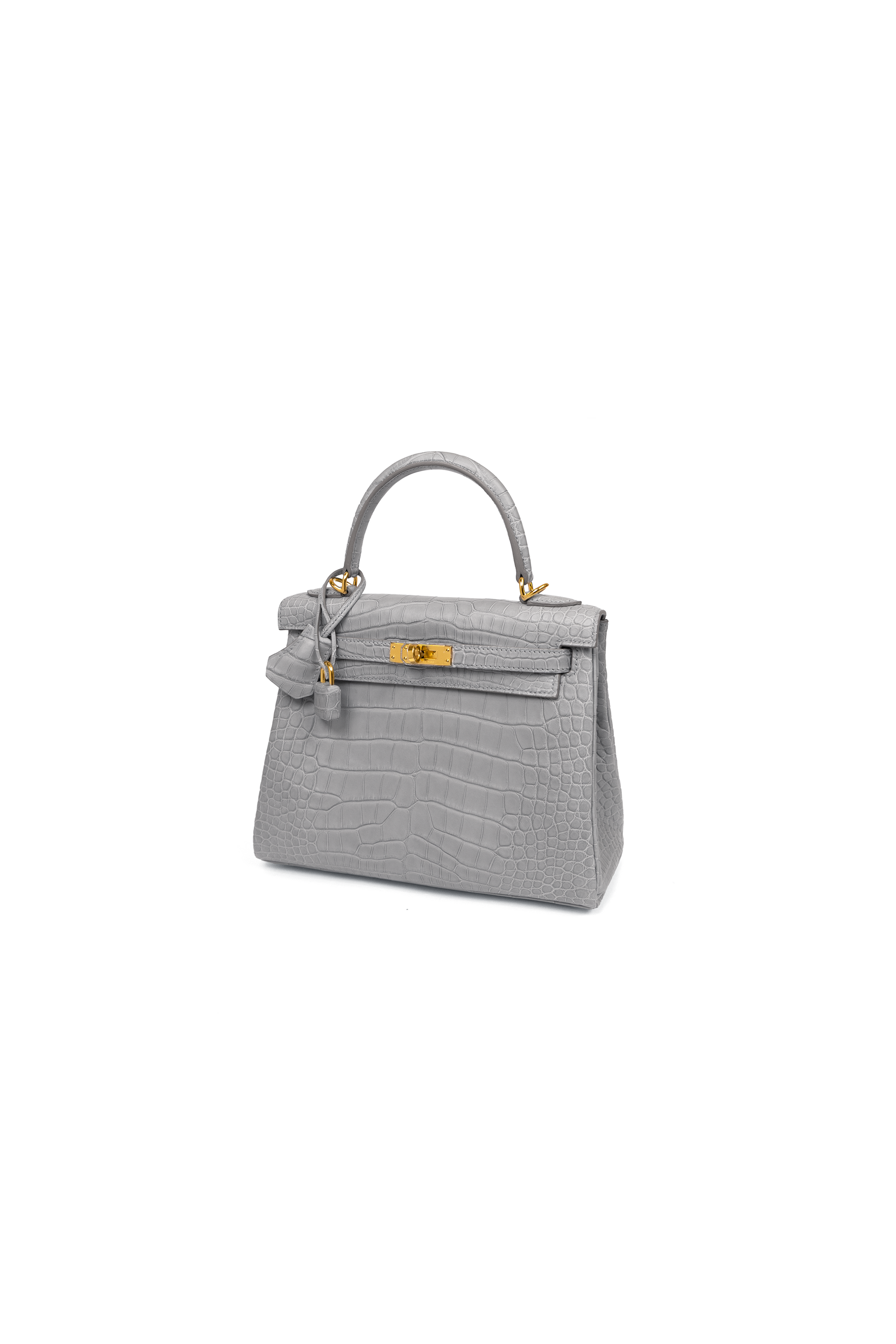 Kelly 25 Alligator in Gris Perle with Gold Hardware
