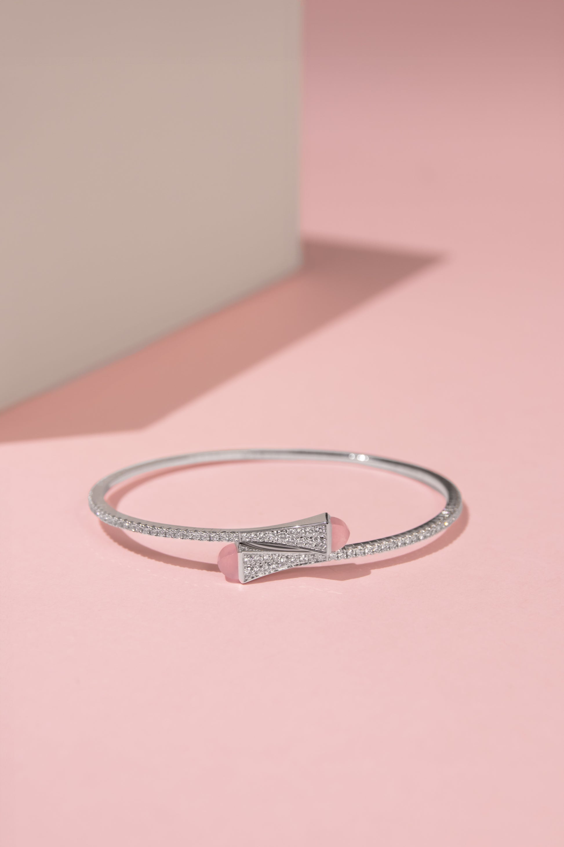 Marli Cleo White Gold Diamond/Pink Quartzite Slim Slip-On Bracelet