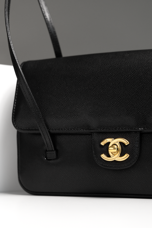 Chanel Small Caviar Black Flap Bag with Long Leather Straps