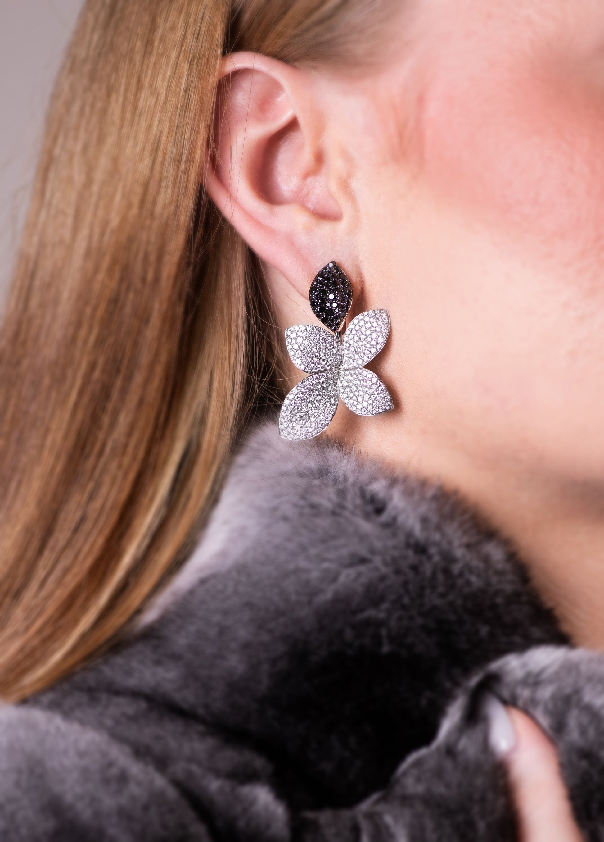 Pasquale Bruni Giardini Segreti Flower White/Black Diamond Earrings