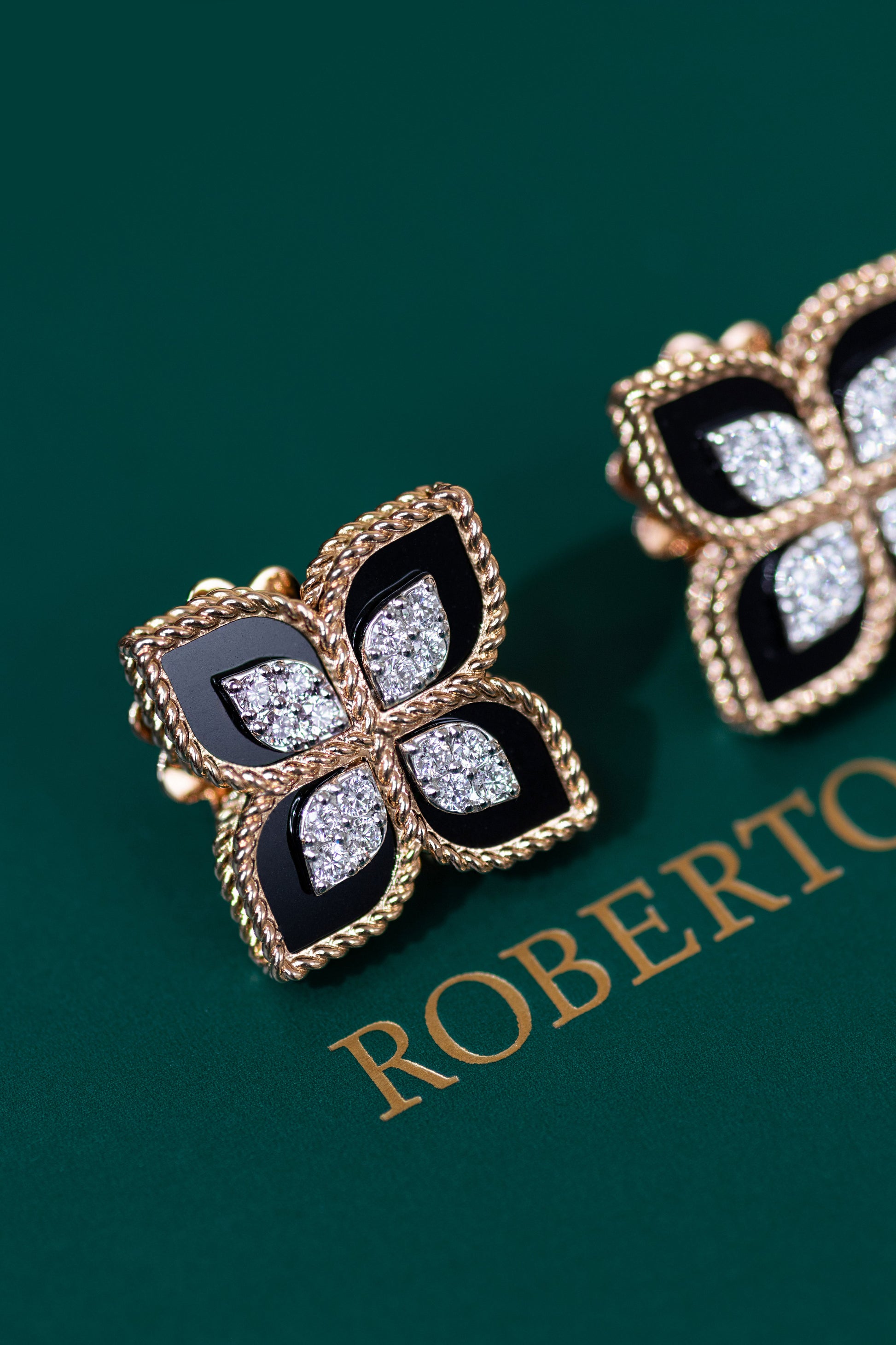 Roberto Coin Princess Flower Diamond Earrings & Pendant in Rose Gold/Black Jade